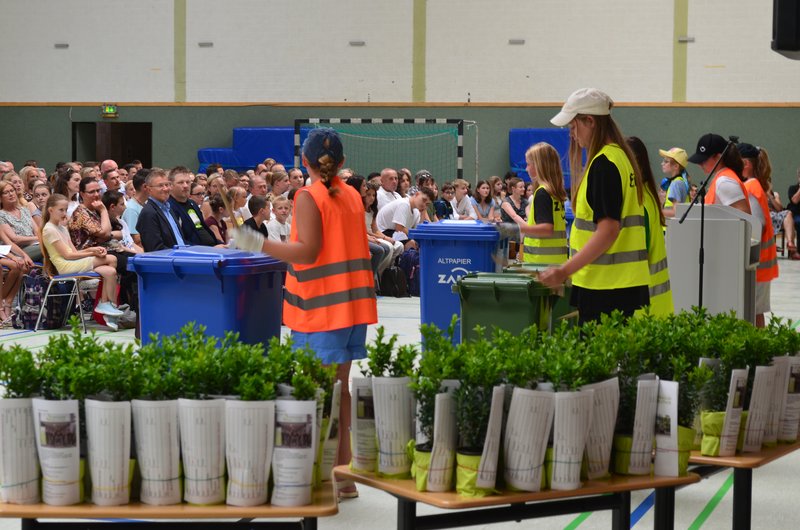 Der Tradition gemäß bekamen unsere Jüngsten dann von ihren Patenschülerinnen und Patenschülern ihren eigenen kleinen Buchsbaum als Symbol für das Leben und das Lernen zur Pflege überreicht. Wie in jedem Jahr schloss die Einschulungsfeier mit der Klassenleitungsstunde. Die Schulgemeinschaft des Gymnasiums Himmelsthür wünscht ihren jüngsten Mitgliedern eine erfolgreiche und schöne Schulzeit an unserer Schule.