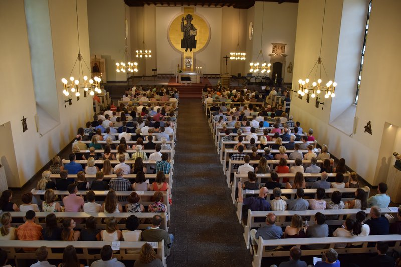 Diese wurden symbolisch aus den Schultaschen heraus und in den großen Koffer hineingepackt, der vor dem Altar der St. Martinus Kirche bereit stand und der Hoffnung Ausdruck gab, dass diese Erfahrungen auch gute Begleiter für die weiteren Lebenswege sein werden, auf die sich die Abiturientinnen und Abiturienten nun begeben werden.
