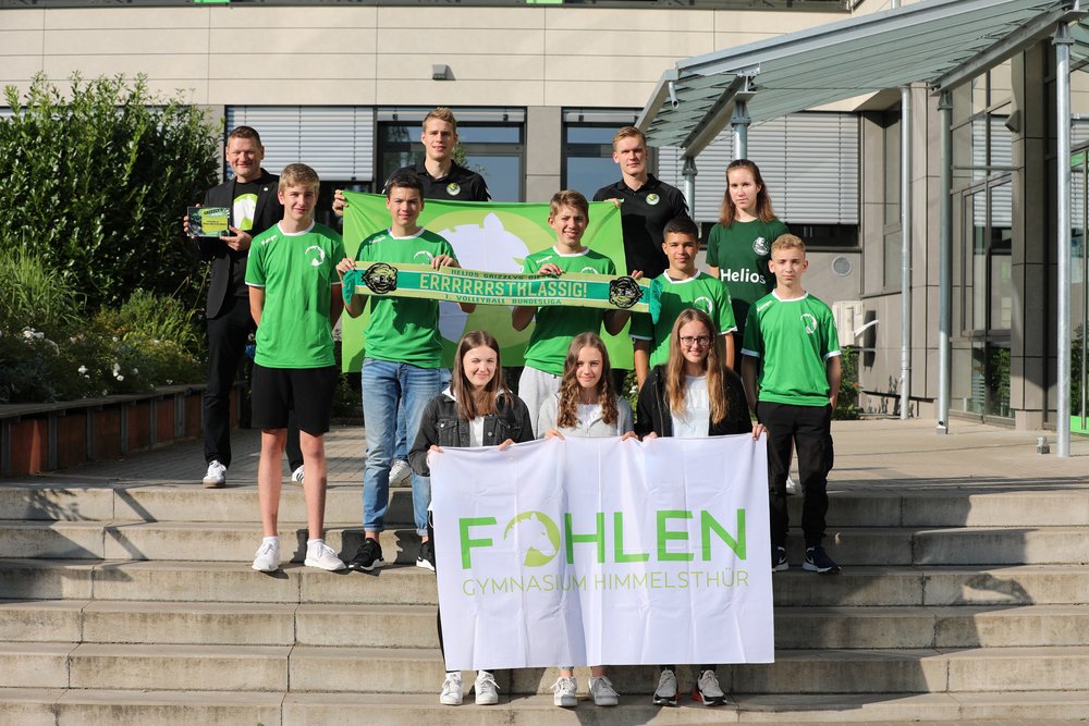 Auf einen sportlichen Kontakt zwischen Volleyballprofis und Schülerinnen und Schülern wird an diesem Tag aus Rücksicht auf die geltenden Hygiene-Regeln verzichtet. Dennoch stehen Schülerinnen und Schüler aus Frau Manns Volleyballprofil in Jahrgang 9 parat, um die prominenten Gäste zu begrüßen. Doch für dieses Mal bleibt es beim gemeinsamen Fototermin an der frischen Luft. Aber ein Besuch mit sportlichem Anteil ist bei solch vertrauten Partnern ganz bestimmt nur aufgeschoben.