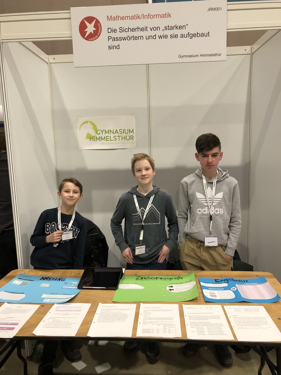 Im Fachgebiet Mathematik/Informatik haben Mika, Linus und Jonas aus der 7b die Sicherheit von „starken“ Passwörtern untersucht und sind dafür mit dem dritten Preis gewürdigt worden.