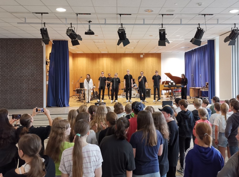 Ach ja, falls man uns nicht im gesamten Gebäude gehört hat: Wir haben die Jahrgänge in gerade und ungerade Zahlen aufgeteilt und so zwei Konzerte gegeben, damit es nicht zu voll in der Halle wurde.