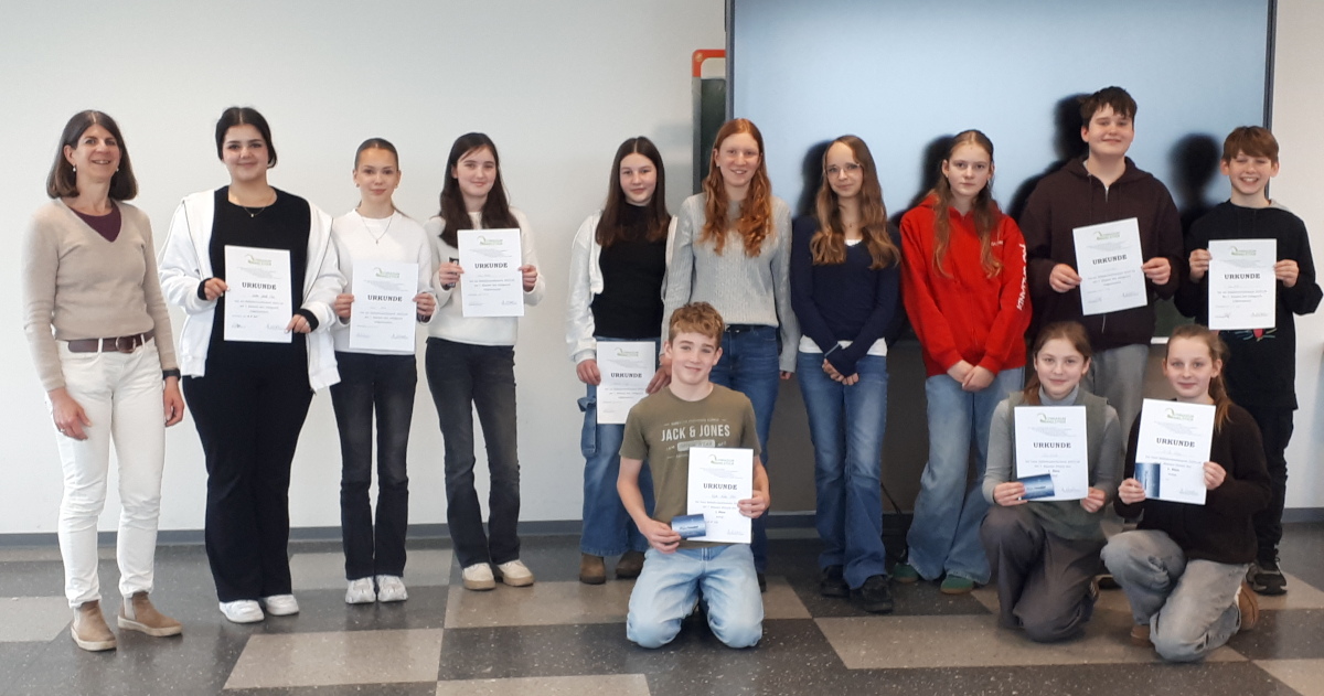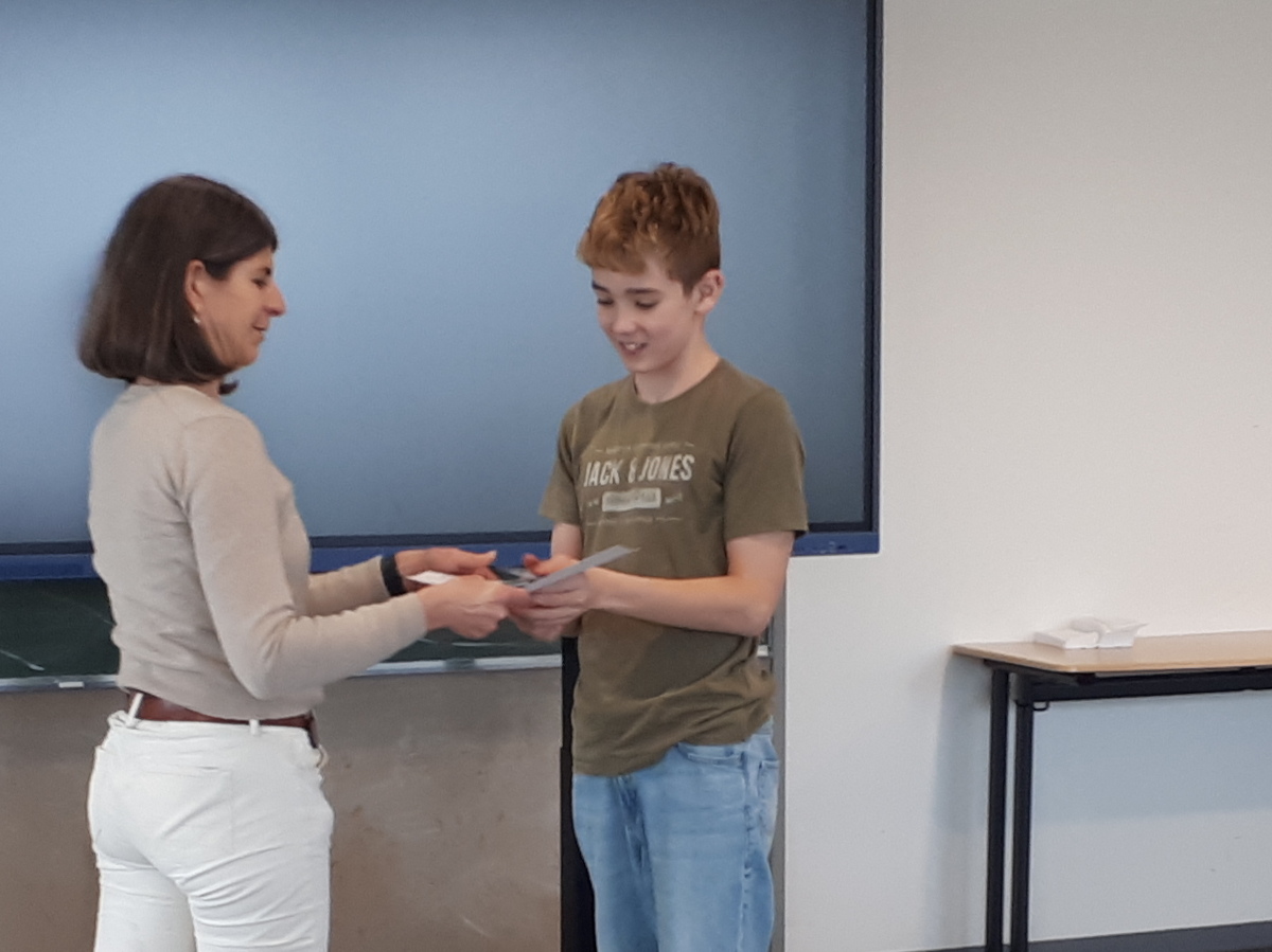 Im Einzelwettbewerb ging es extrem eng zu: Hier wurden die Ballade „Der Handschuh“, zweimal der „Zauberlehrling“ und die moderne Ballade „Der Maulwurf muss weg“ vorgetragen. Letztlich setzte sich dabei Kjell Mühe mit der Ballade „Der Maulwurf muss weg“ durch und gewann ebenfalls einen Kinobesuch. Alle Vortragenden bekamen von der Fachobfrau Urkunden über ihre erfolgreiche Teilnahme am Balladenwettbewerb überreicht und sind sicher um eine spannende, anregende Erfahrung reicher: